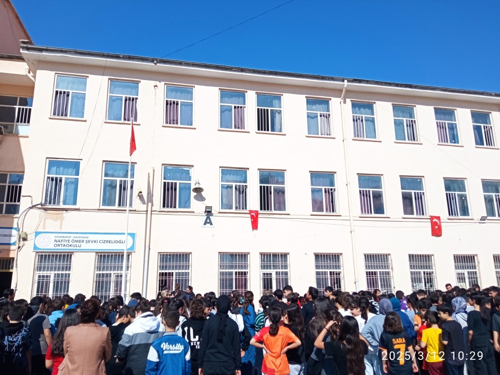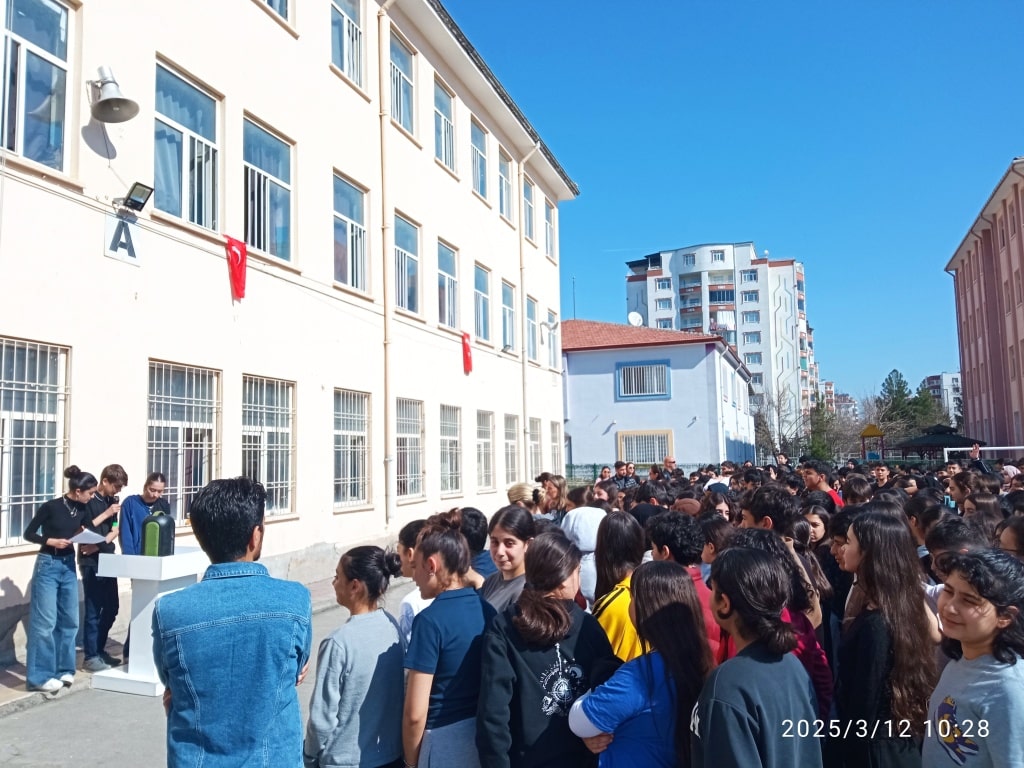 Okulumuz Beden Eğitimi Habib Özdil' in hazırladığı 8/A Sınıfı öğrencilerinden Zeynep Duru ve Beritan ISSI' nın sunduğu 12 Mart İstiklal Marşı'nın kabulü programı okulumuz öğrencileri ve öğretmenlerinin katılımıyla coşkuyla kutlandı.